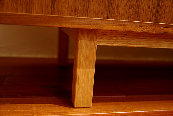 現在所有されてるデンマーク製ストレージとの相性を考量してチーク突き板とオークの無垢脚で製作致しました。