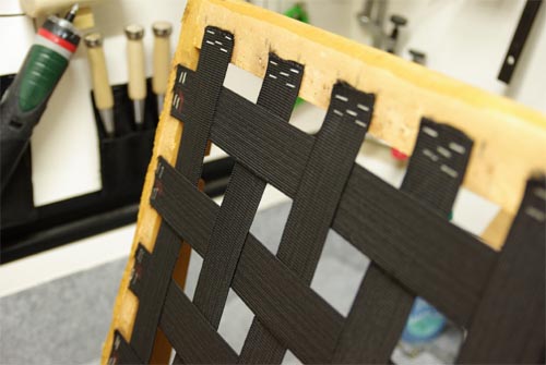 固めの仕上がりがご希望のオーナーです。スプリングがないクッションですがバンドとウレタンでよい反発が出るように調整しました。