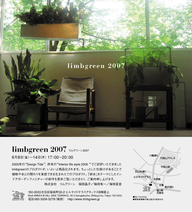 当店とお付き合いさせていただいております、Limb Co, Ltdのインテリアデザイナー福田さんが明日まで代官山のヒルサイドテラスB棟屋上にて展示会を行なっております。