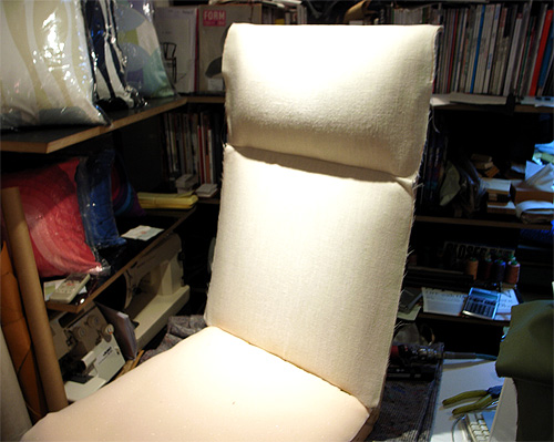 昨日ウレタンの補修や生地の裁断などはやっておいたので今日はひたすらタッカー....