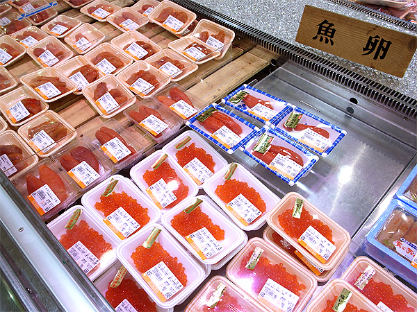 鮮魚のコーナーに釘づけです。筋子.タラコ.明太子は大好物なのです。