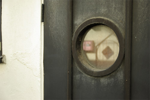 何度も塗り重ねられた木製の扉。さらにホコリが堆積、怪しくたたずむ昭和初期の建造物。