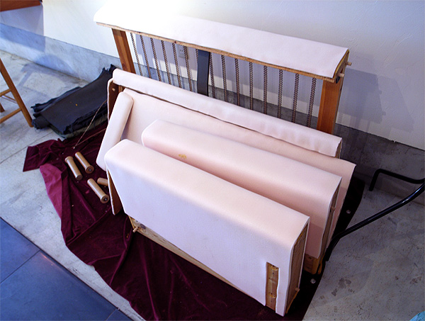 クッションの部分は縫い作業があるので只今縫製中です。ボンネルスプリングに巻いてあるウレタンは直しました。