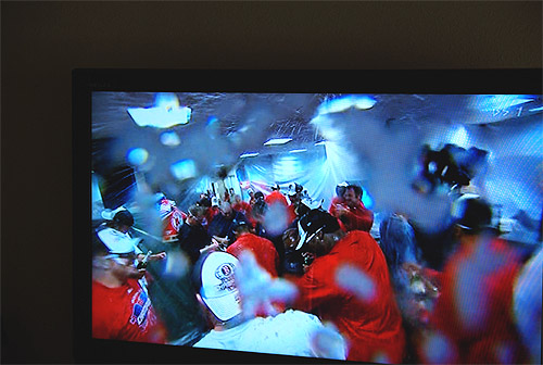 何の関係もない仕事をしていますが、いつかシャンパンファイトに参加したいです。 ビッグパピーことオルティーズは9回の裏にすでに水中眼鏡でベンチにいました。とても気が早い人なのです。面白かった。向こうの中継ではグラウンド外もよく放送に入れてくるので飽きずに観れます。 観客の拾い方が上手いです。